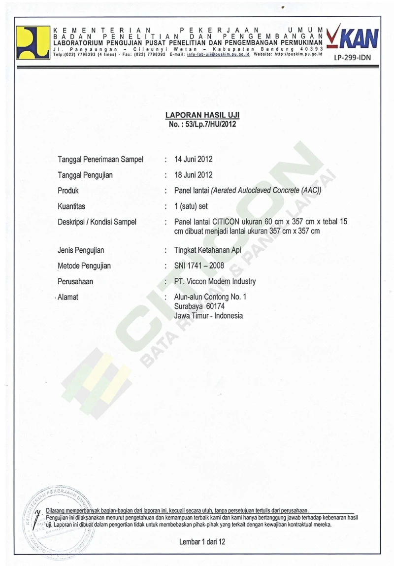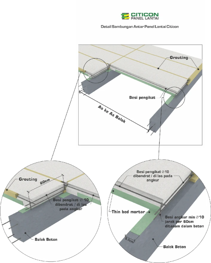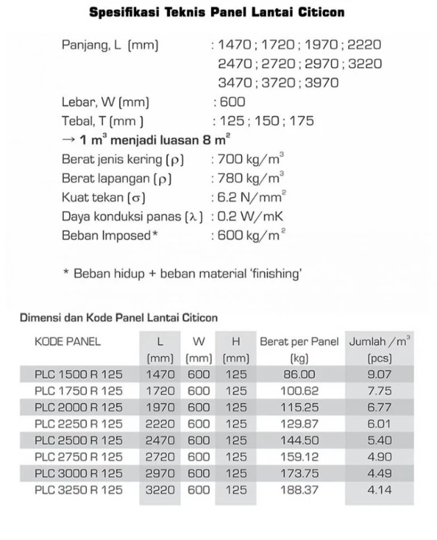 Panel Lantai CITICON adalah sebuah inovasi terbaik dan terbaru di bidang infrastruktur di Indonesia. Dicetak dalam bentuk lembaran sehingga tidak memerlukan proses pengecoran pada konstruksi lantai rumah dan gedung bertingkat serta memiliki berat yang tiga kali lebih ringan dari cor konvensional sehingga mempercepat aplikasi pembangunan serta presisi pada pemasangannya, menjadikan panel lantai CITICON sebagai pilihan cerdas untuk membangun, rumah atau gedung bertingkat.